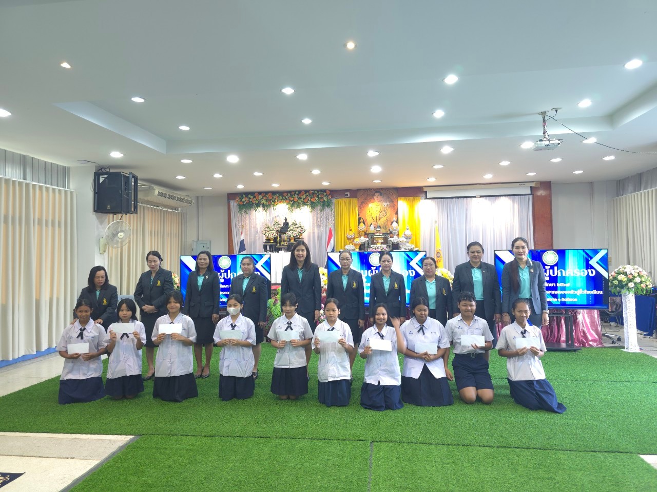 นอกจากนี้ โรงเรียนยังได้มอบทุนกองทุนเสมอภาคทางการศึกษา (กสศ.) ให้แก่นักเรียนในระดับชั้นมัธยมศึกษาปีที่ 1 ถึง มัธยมศึกษาปีที่ 3 เพื่อส่งเสริมโอกาสทางการศึกษาและช่วยลดความเหลื่อมล้ำ โดยมีนักเรียนที่ได้รับทุนในครั้งนี้จำนวน [ระบุจำนวน] คน ซึ่งถือเป็นการสร้างแรงจูงใจให้นักเรียนมุ่งมั่นพัฒนาตนเองทั้งในด้านการเรียนและคุณธรรม